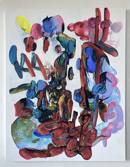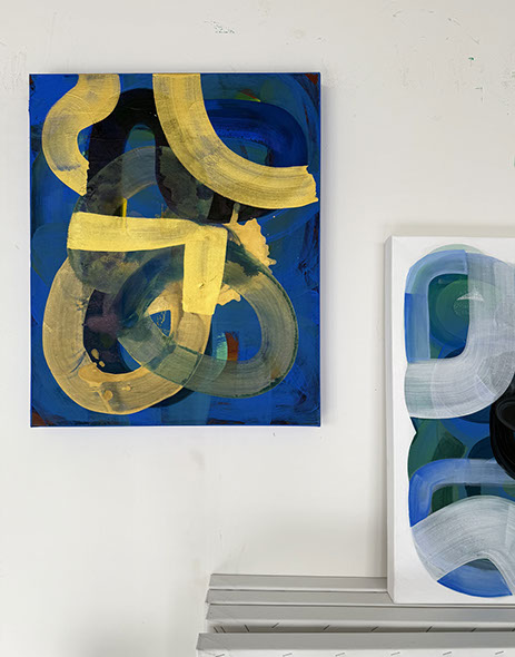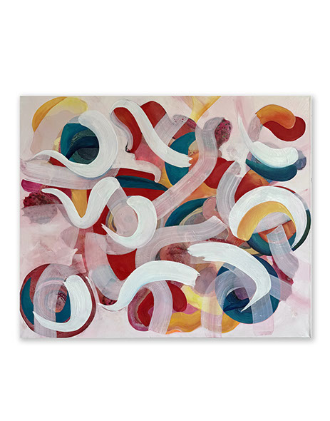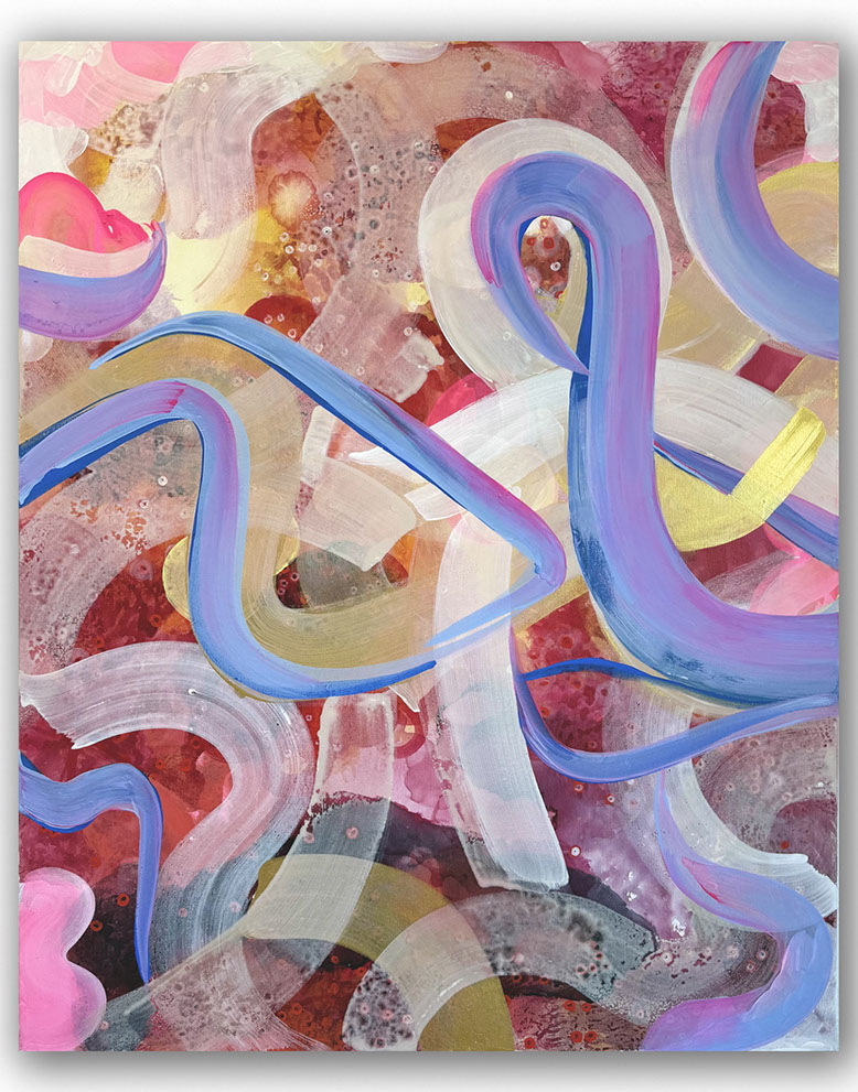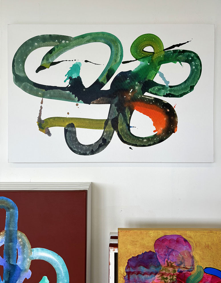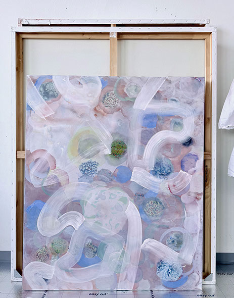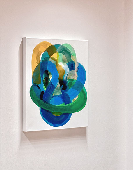 Kwon's artistic style has evolved significantly over the years. Originally, she focused on figurative art and questions of identification before moving towards abstraction during the pandemic. In her more recent works, such as in the «Evolution» or «Unexpected Guests« series, she uses a mixture of ink, pigment, gouache, acrylic and oil paint. In the abstraction, the perspective does not use the singular vantage point from the Renaissance but rather a non-linear perspective as found in traditional Asian Art. This view of multiplicity encourages movement and engagement with a work of art, with a more universal approach to seeing.